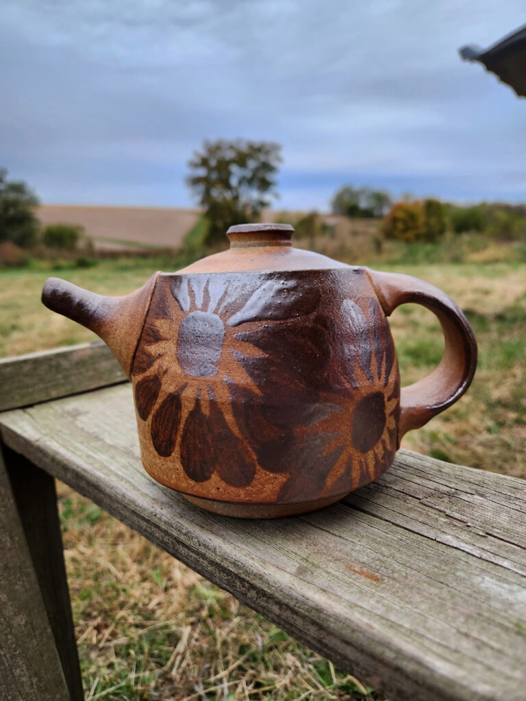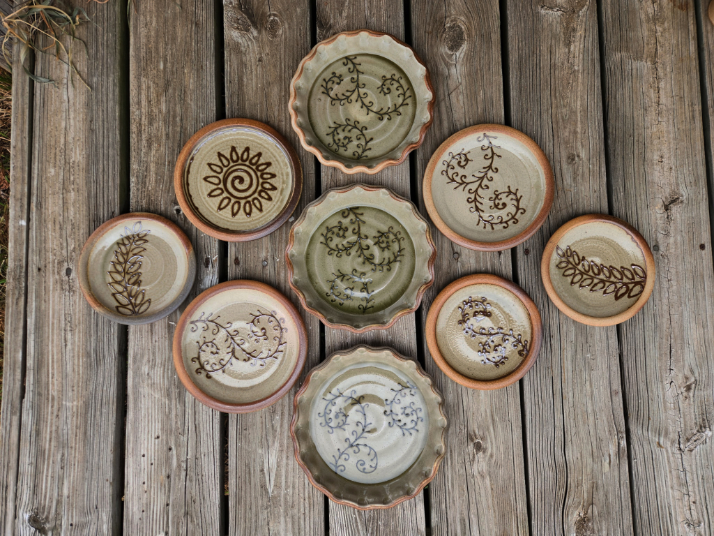 My work consists mostly of functional wood-fired pottery. I enjoy throwing durable dishes on the potter’s wheel that are meant to be used on a daily basis. By decorating each piece with floral and filigree patterns, I try to create pots that are both utilitarian and beautiful with a rustic and earthy feel.