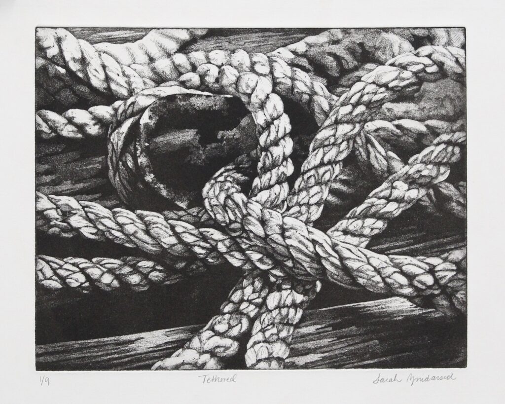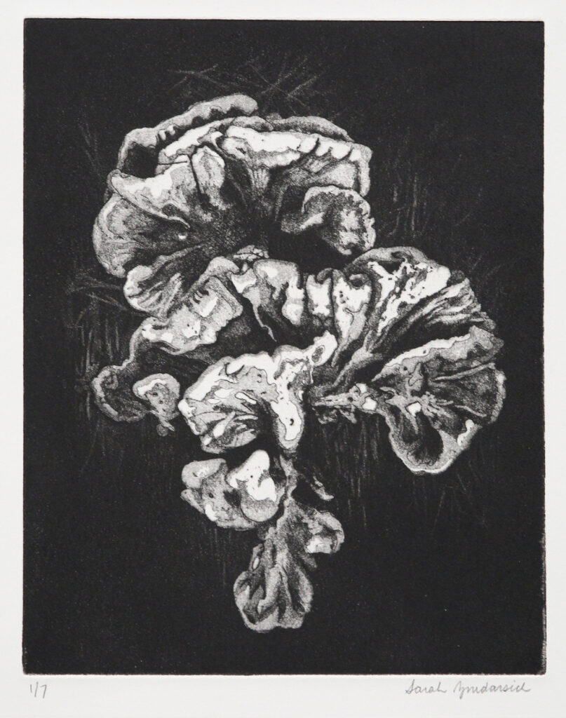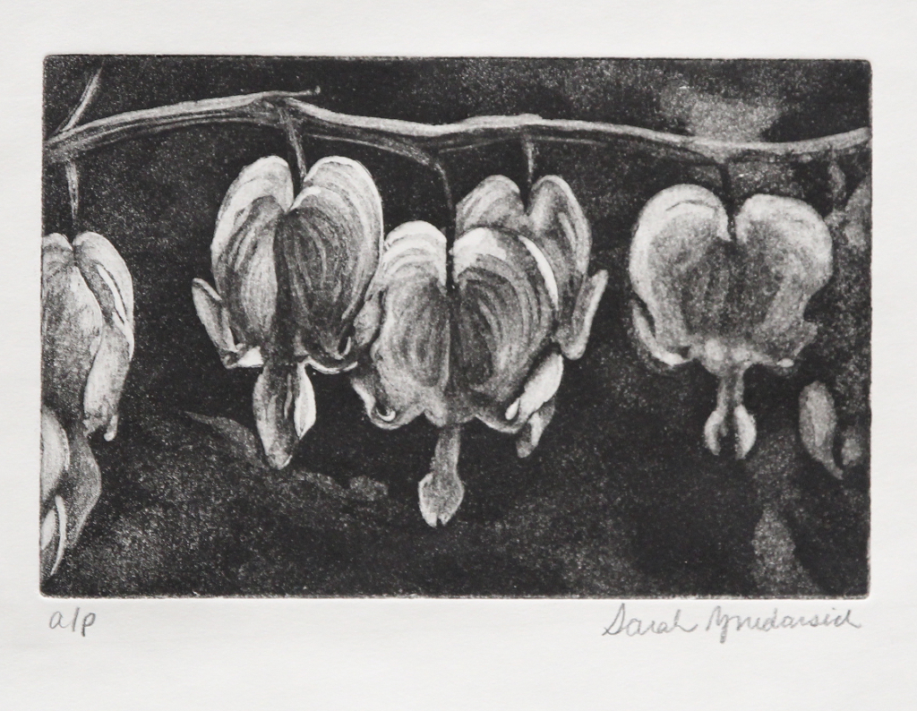 “My monotone aquatint prints are based on my travel and nature photography. Intaglio printmaking demands my time and full attention. I spend time with the image, learning every detail of it, carving it into the metal as it was carved into my memory. The grainy tonal range of aquatint portrays a sense of nostalgia, as the images appear to be weathered and aged. As I etch layers of value into the metal, I live in the memories of my experiences. The physicality of printmaking ensures that every decision is intentional, and that I must be invested in each image. Therefore, I use this art form to process through my life experiences, and can unlock the emotions of a particular time or place by creating each print.